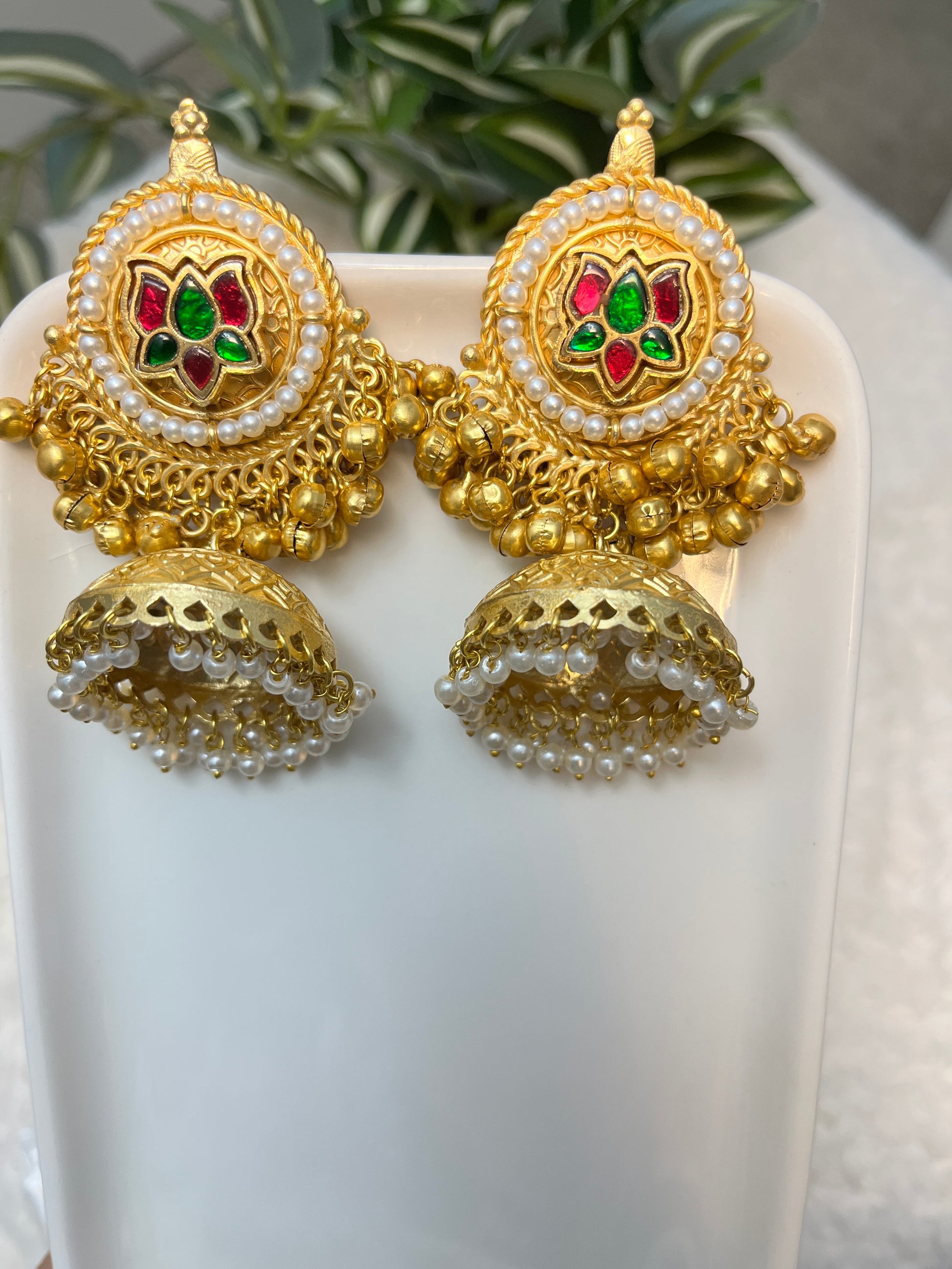 Gold polish jhumka fusion earrings